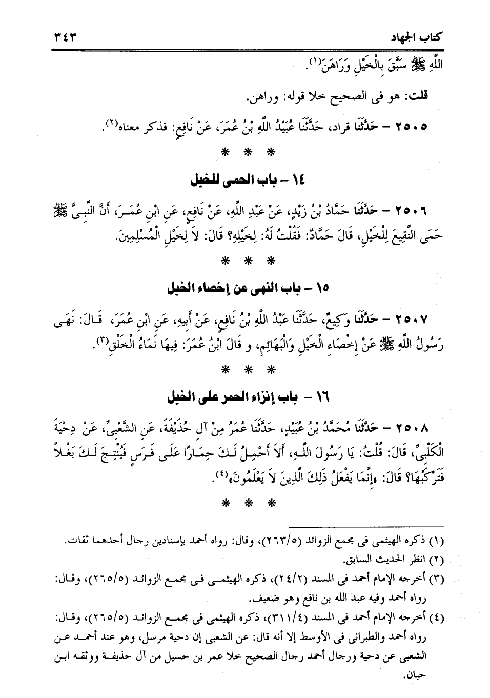 2506 - حَدَّثَنَا حَمَّادُ بْنُ زَيْدٍ، عَنْ عَبْدِ اللَّهِ، عَنْ نَافِعٍ، عَنِ ابْنِ عُمَرَ، أَنَّ النَّبِىَّ صلى الله عليه وسلم حَمَى النَّقِيعَ لِلْخَيْلِ، قَالَ حَمَّادٌ: فَقُلْتُ لَهُ: لِخَيْلِهِ؟ قَالَ: لاَ لِخَيْلِ الْمُسْلِمِينَ.