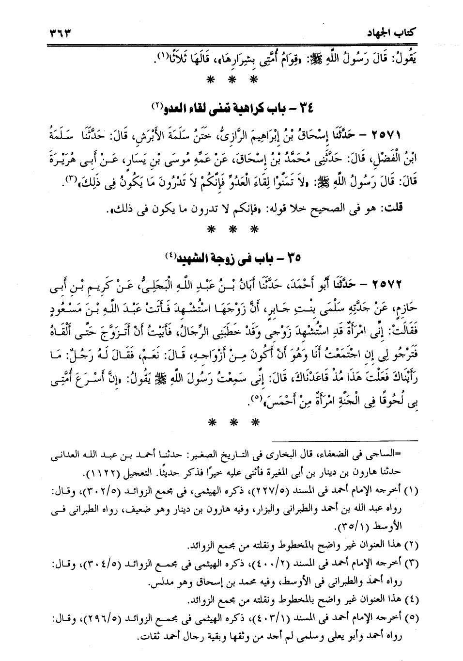 2571 - حَدَّثَنَا إِسْحَاقُ بْنُ إِبْرَاهِيمَ الرَّازِىُّ، خَتَنُ سَلَمَةَ الأَبْرَشِ، قَالَ: حَدَّثَنَا سَلَمَةُ ابْنُ الْفَضْلِ، قَالَ: حَدَّثَنِى مُحَمَّدُ بْنُ إِسْحَاقَ، عَنْ عَمِّهِ مُوسَى بْنِ يَسَارٍ، عَنْ أَبِى هُرَيْرَةَ قَالَ: قَالَ رَسُولُ اللَّهِ صلى الله عليه وسلم: "لاَ تَمَنَّوْا لِقَاءَ الْعَدُوِّ فَإِنَّكُمْ لاَ تَدْرُونَ مَا يَكُونُ فِى ذَلِكَ.
