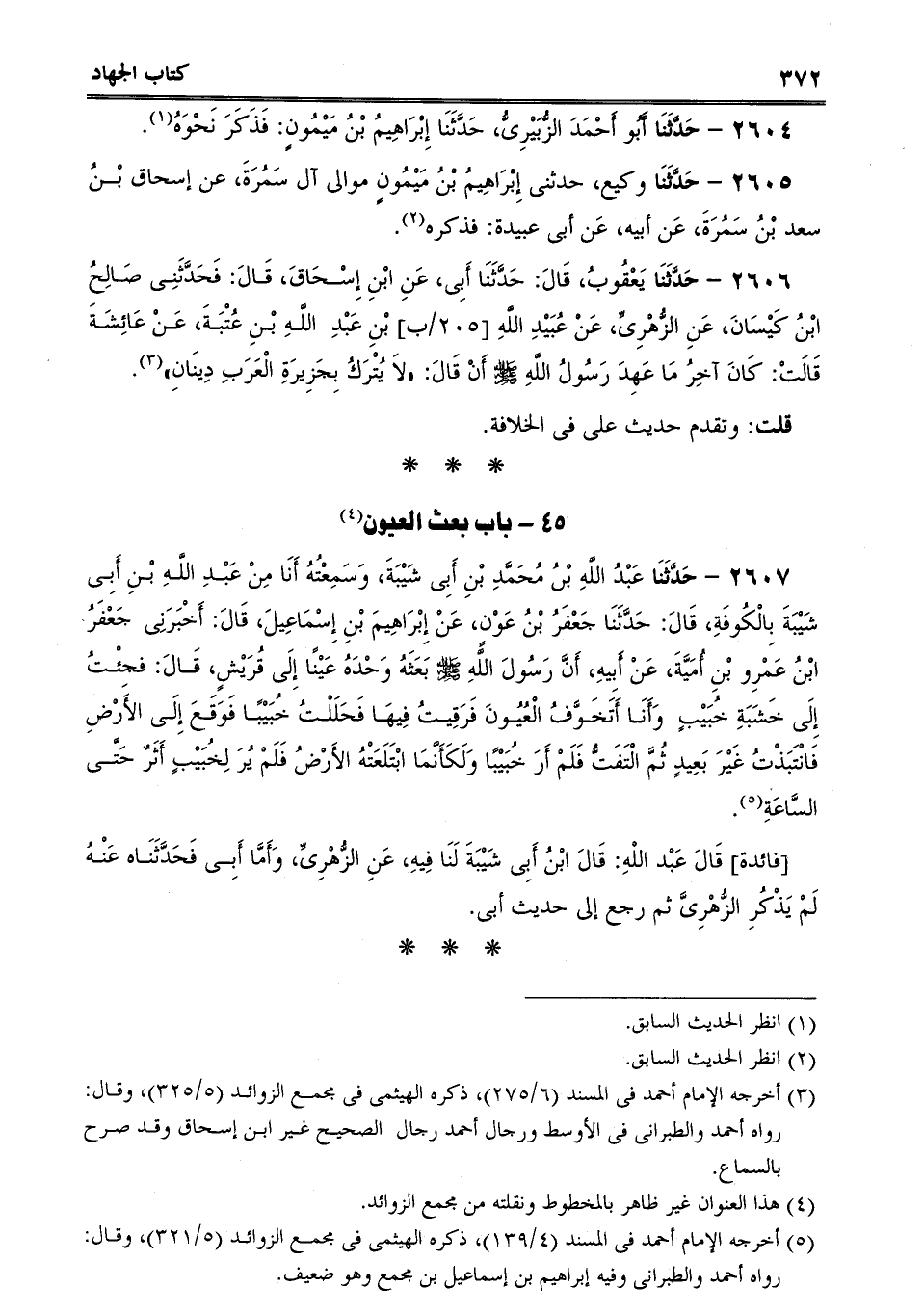 2605 - حَدَّثَنَا وكيع، حدثنى إِبْرَاهِيمُ بْنُ مَيْمُونٍ موالى آل سَمُرَةَ، عن إسحاق بْنُ سعد بْنُ سَمُرَةَ، عَن أبيه، عَن أبى عبيدة: فذكره.