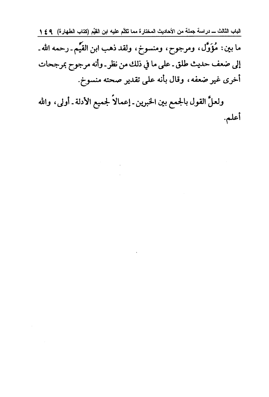 ما بين: مُؤَوَّل، ومرجوح، ومنسوخ، ولقد ذهب ابن القَيِّم - رحمه الله - إلى ضعف حديث طلق - على ما في ذلك من نظر - وأنه مرجوح بمرجحات أخرى غير ضعفه، وقال بأنه على تقدير صحته منسوخ.