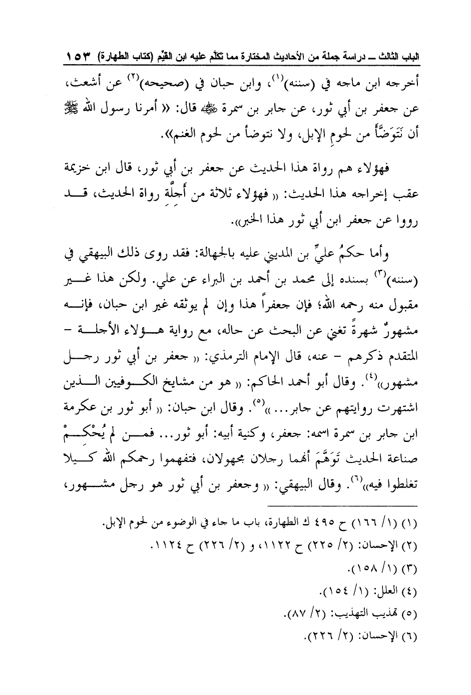 (1/ 166) ح 495 ك الطهارة، باب ما جاء في الوضوء من لحوم الإبل.