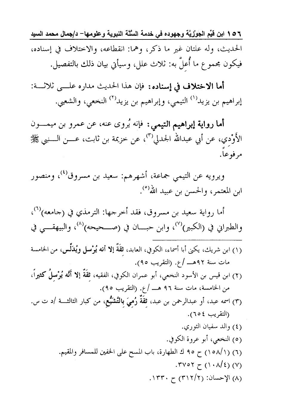 أما رواية إبراهيم التيمي: فإنه يُروى عنه، عن عمرو بن ميمون الأَوْدِي، عن أبي عبد الله الجدلي3، عن خزيمة بن ثابت، عن النبي صلى الله عليه وسلم مرفوعاً.