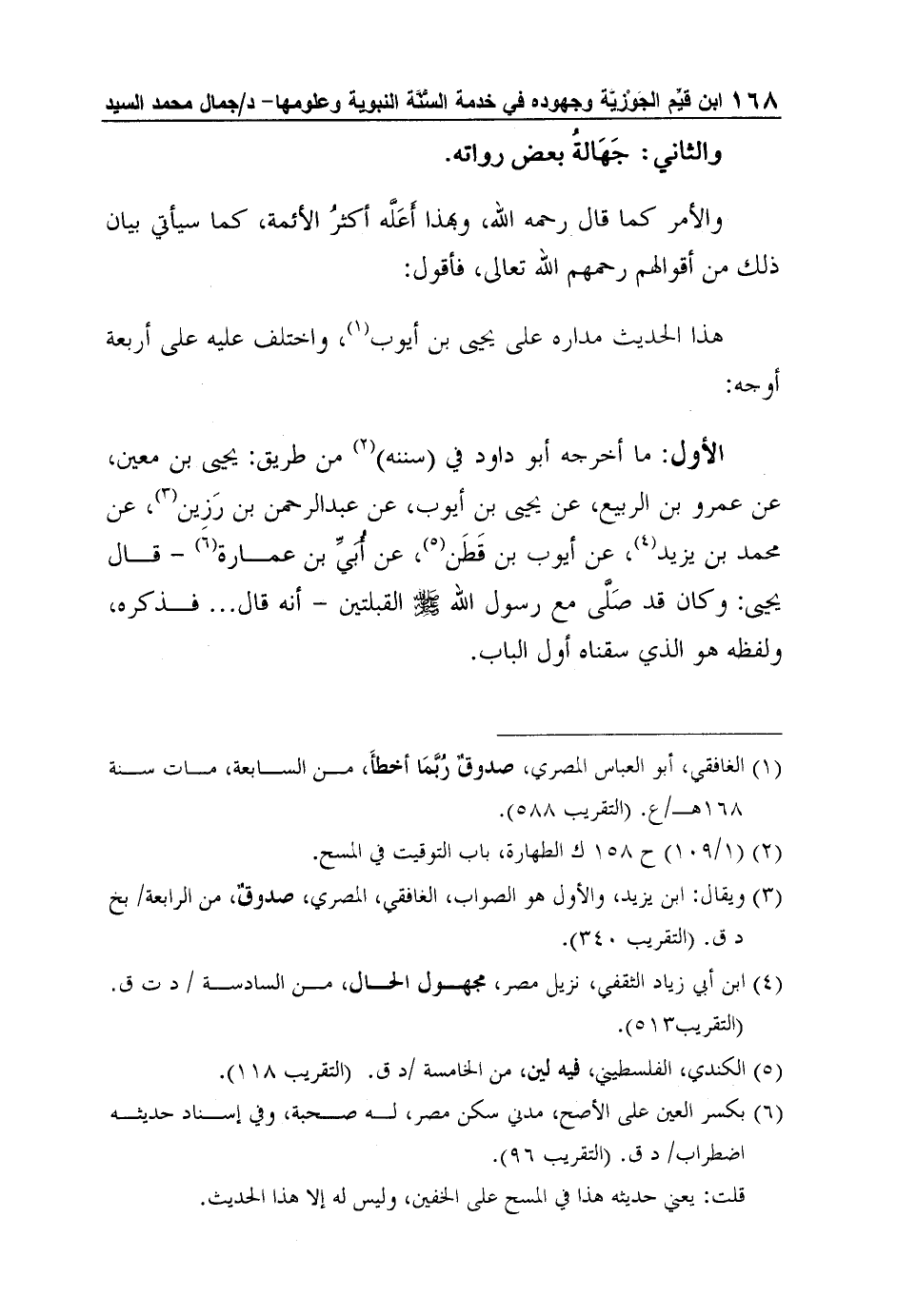 1 الغافقي، أبو العباس المصري، صدوقٌ رُبَّمَا أخطأَ، من السابعة، مات سنة 168هـ/ع. (التقريب 588) .