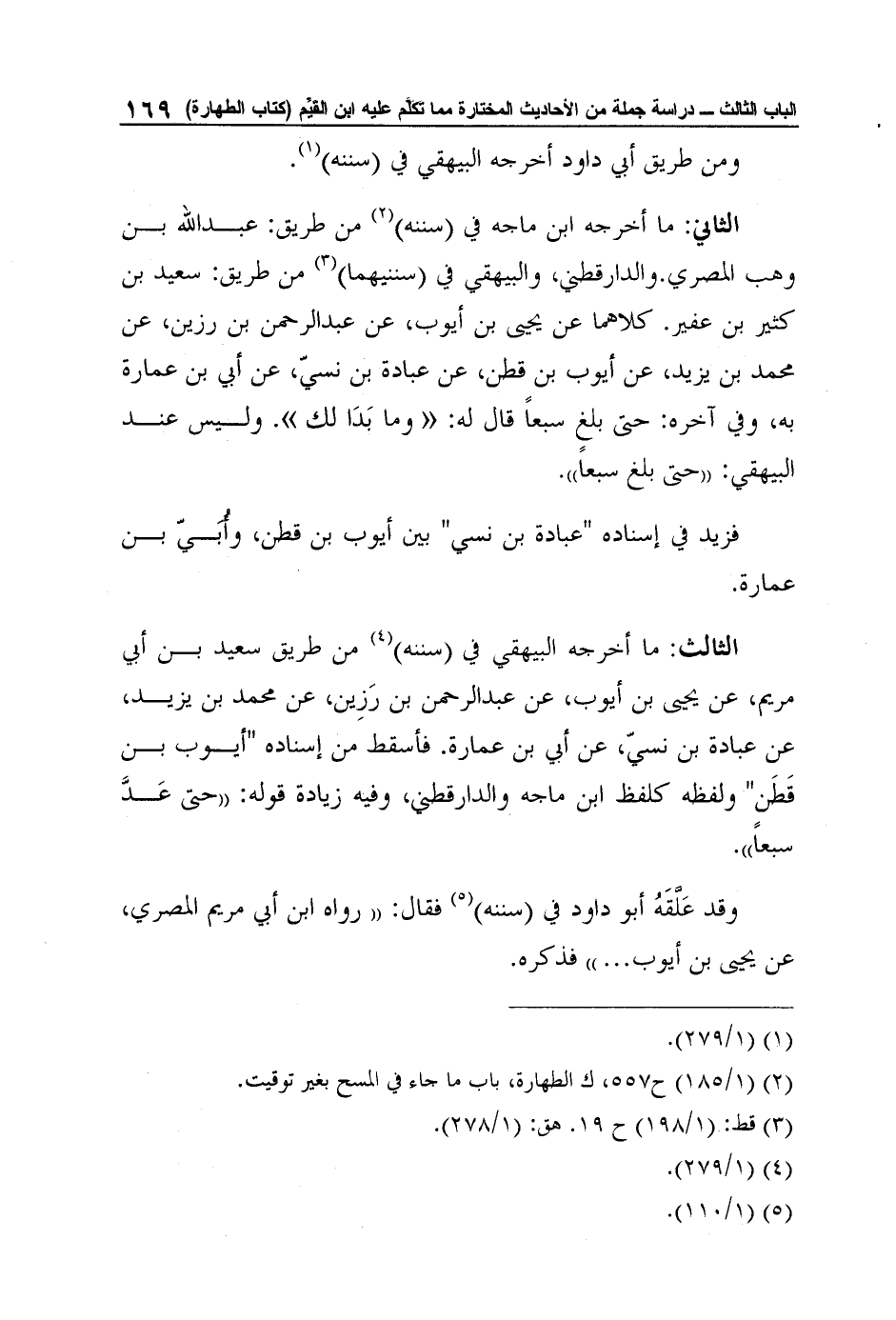 الثاني: ما أخرجه ابن ماجه في (سننه) 2 من طريق: عبد الله بن وهب المصري. والدارقطني، والبيهقي في (سننيهما) 3 من طريق: سعيد بن كثير بن عفير. كلاهما عن يحيى بن أيوب، عن عبد الرحمن بن رزين، عن محمد بن يزيد، عن أيوب بن قطن، عن عبادة بن نسيّ، عن أبي بن عمارة به، وفي آخره: حتى بلغ سبعاً قال له: "وما بَدَا لك". وليس عند البيهقي: "حتى بلغ سبعاً".