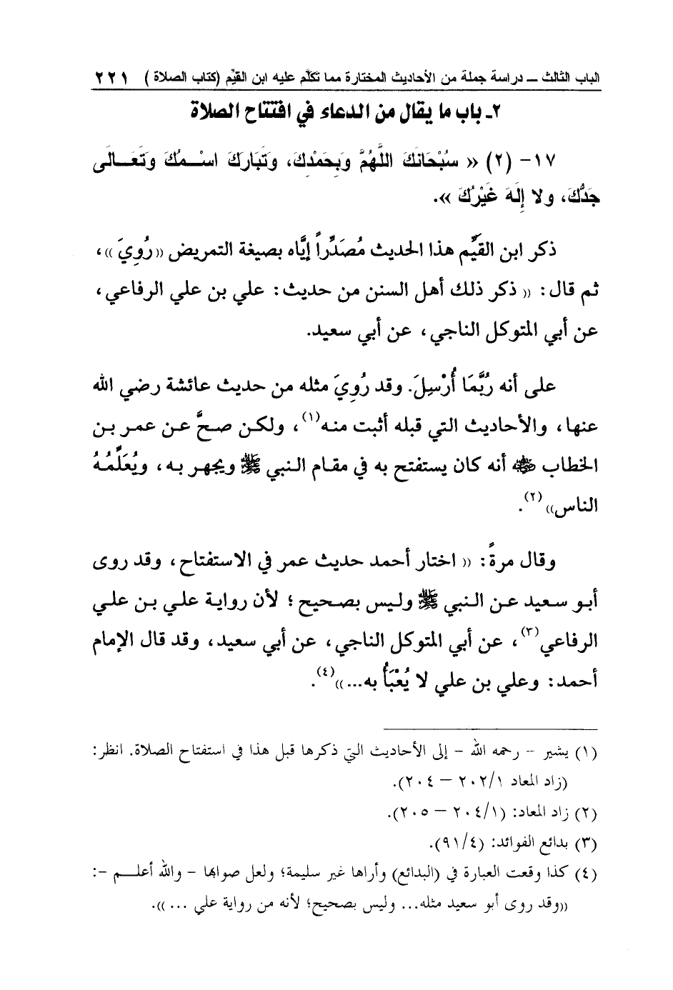 17- (2) "سُبْحَانَكَ اللَّهُمَّ وَبِحَمْدِكَ، وَتَبَارَكَ اسْمُكَ وَتَعَالَى جَدُّكَ، ولا إِلَهَ غَيْرُكَ".