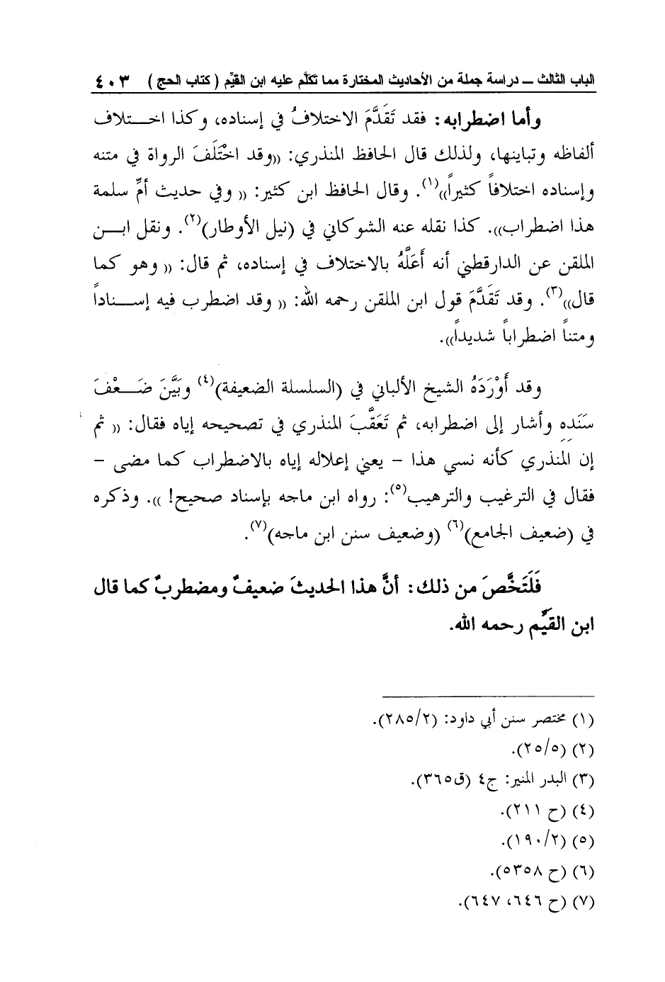 فَلَتَخَّصَ من ذلك: أنَّ هذا الحديثَ ضعيفٌ ومضطربٌ كما قال ابن القَيِّم رحمه الله.
