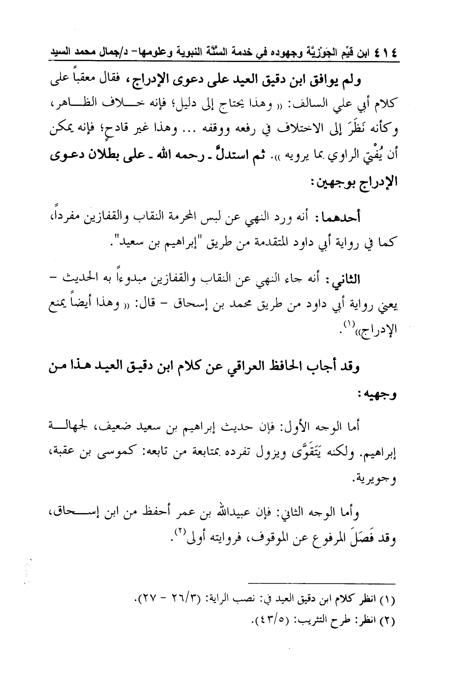 1 انظر كلام ابن دقيق العيد في: نصب الراية: (3/26 - 27) .