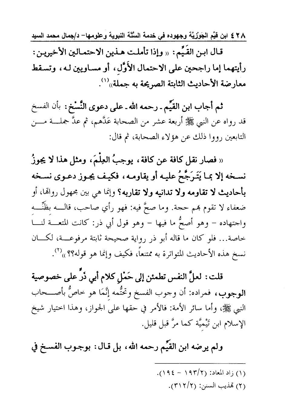 كتاب ابن قيم الجوزية وجهوده في خدمة السنة النبوية وعلومها (اسم الجزء: 2)