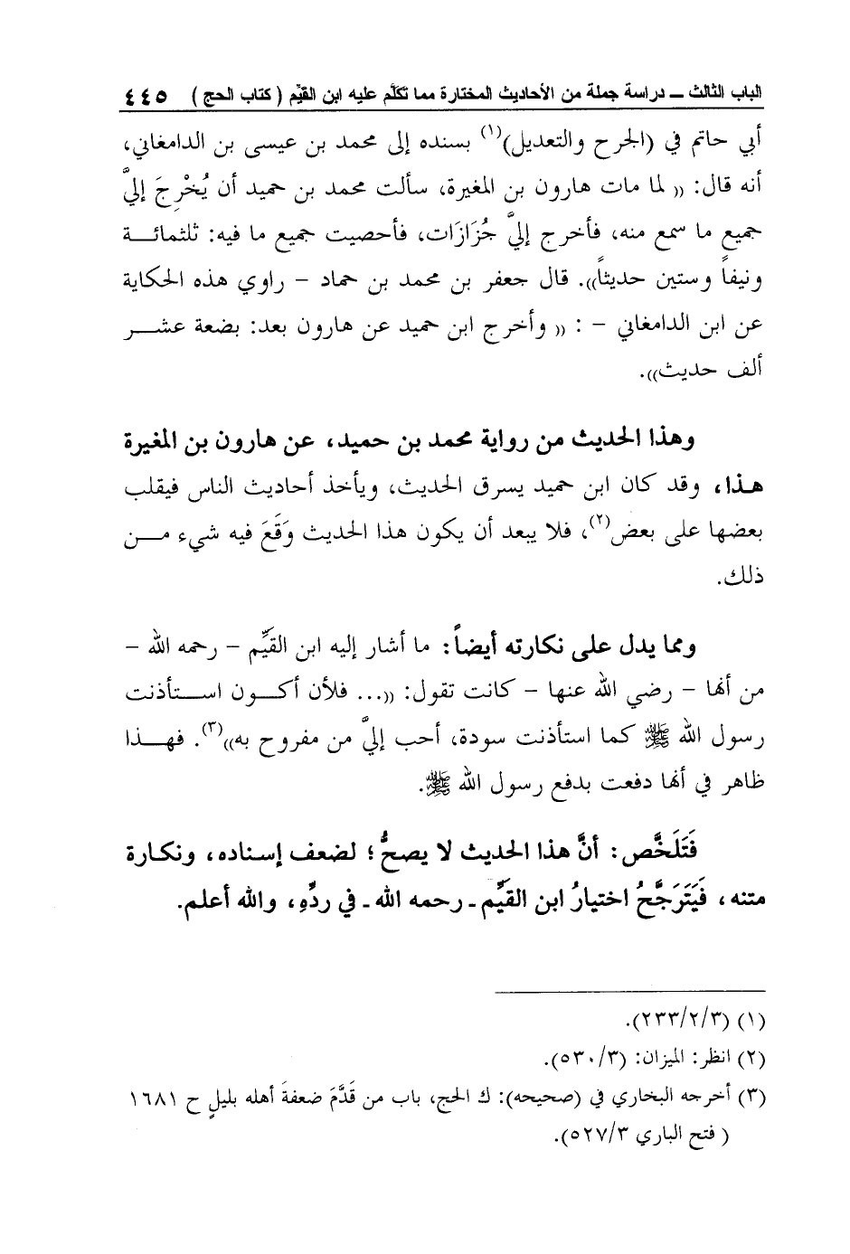 وهذا الحديث من رواية محمد بن حميد، عن هارون بن المغيرة هذا، وقد كان ابن حميد يسرق الحديث، ويأخذ أحاديث الناس فيقلب بعضها على بعض2، فلا يبعد أن يكون هذا الحديث وَقَعَ فيه شيء من ذلك.