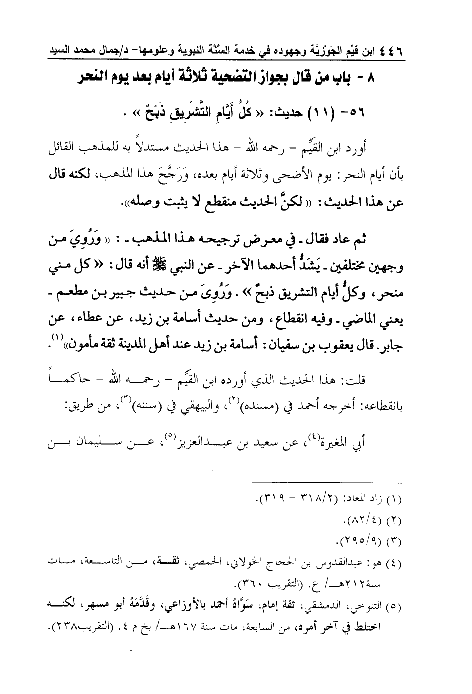 8 - باب من قال بجواز التضحية ثلاثة أيام بعد يوم النحر