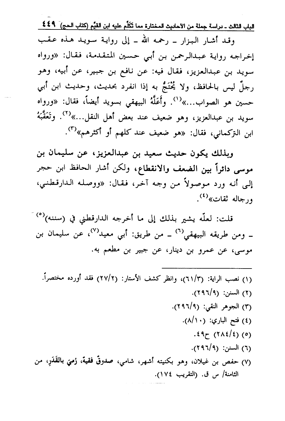 وبذلك يكون حديث سعيد بن عبد العزيز، عن سليمان بن موسى دائراً بين الضعف والانقطاع، ولكن أشار الحافظ ابن حجر إلى أنه ورد موصولاً من وجه آخر، فقال: "ووصله الدارقطني، ورجاله ثقات"4.