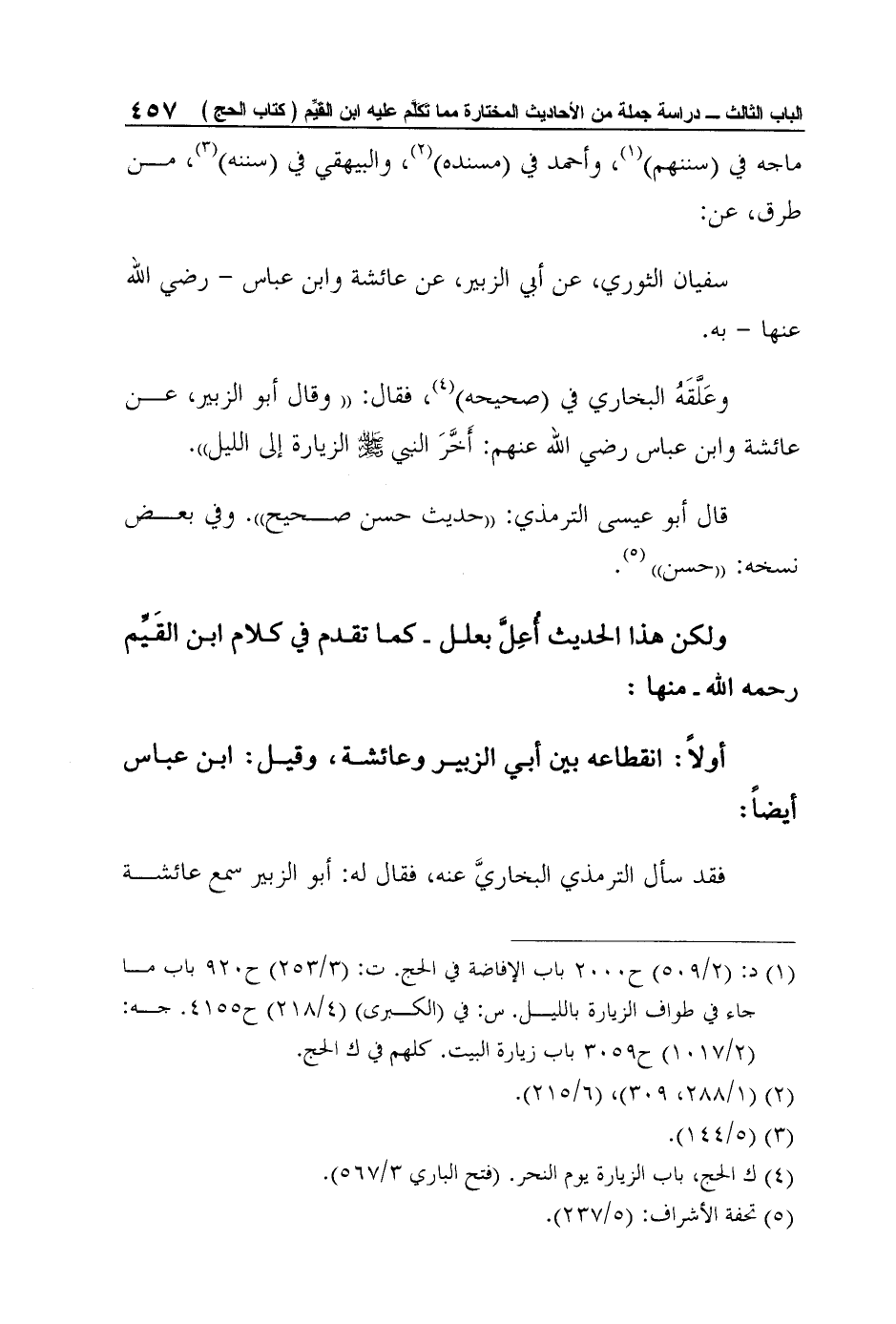 وعَلَّقَهُ البخاري في (صحيحه) 4، فقال: "وقال أبو الزبير، عن عائشة وابن عباس رضي الله عنهم: أَخَّرَ النبي صلى الله عليه وسلم الزيارة إلى الليل".