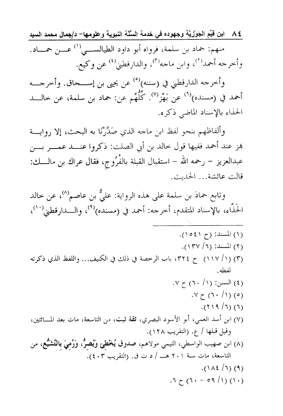 وأخرجه الدارقطني في (سننه) 5 عن يحيى بن إسحاق. وأخرجه أحمد في (مسنده) 6 عن بَهْز7. كُلُّهُم عن: حماد بن سلمة، عن خالد الحذاء بالإسناد الماضي ذكره.