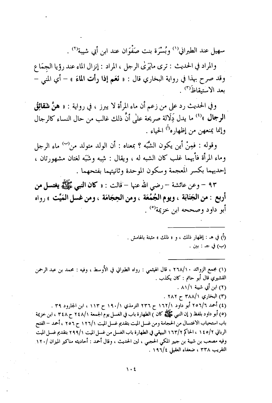 (¬4) أحمد 6/ 256 أبو داود 1/ 162 ح 236 الترمذي 1/ 190 ح 113، ابن الجارود 39.