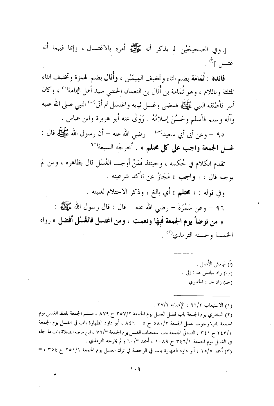 95 - وعن أبي أبي سعيد (جـ) - رضي الله عنه - أن رسول الله - صلى الله عليه وسلم - قال: غسل الجمعة واجب على كل محتلم". أخرجه السبعة (¬2).