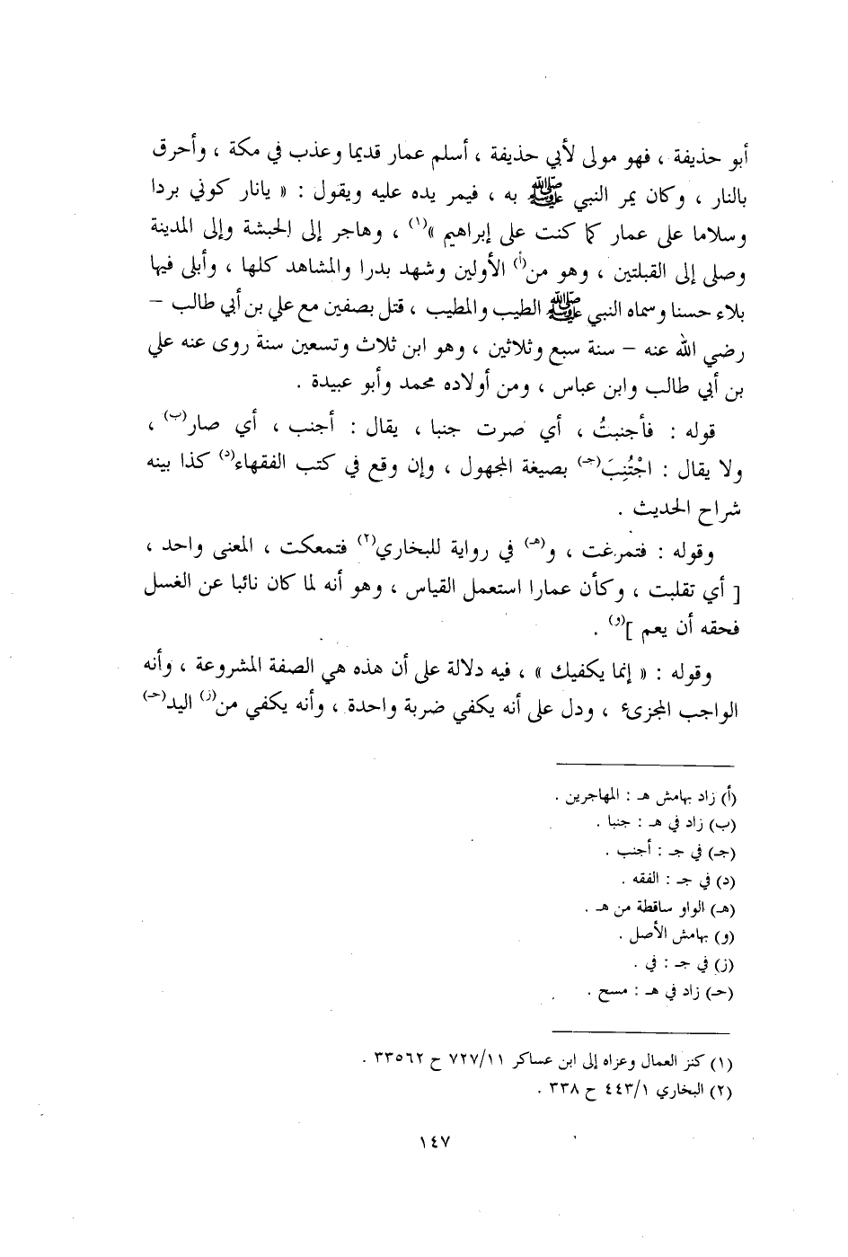 قوله: فأجنبتُ، أي صرت جنبا، يقال: أجنب، أي صار (ب)، ولا يقال: اجْتُنِبَ (جـ) بصيغة المجهول، وإن وقع في كتب الفقهاء (د) كذا بينه شراح الحديث.