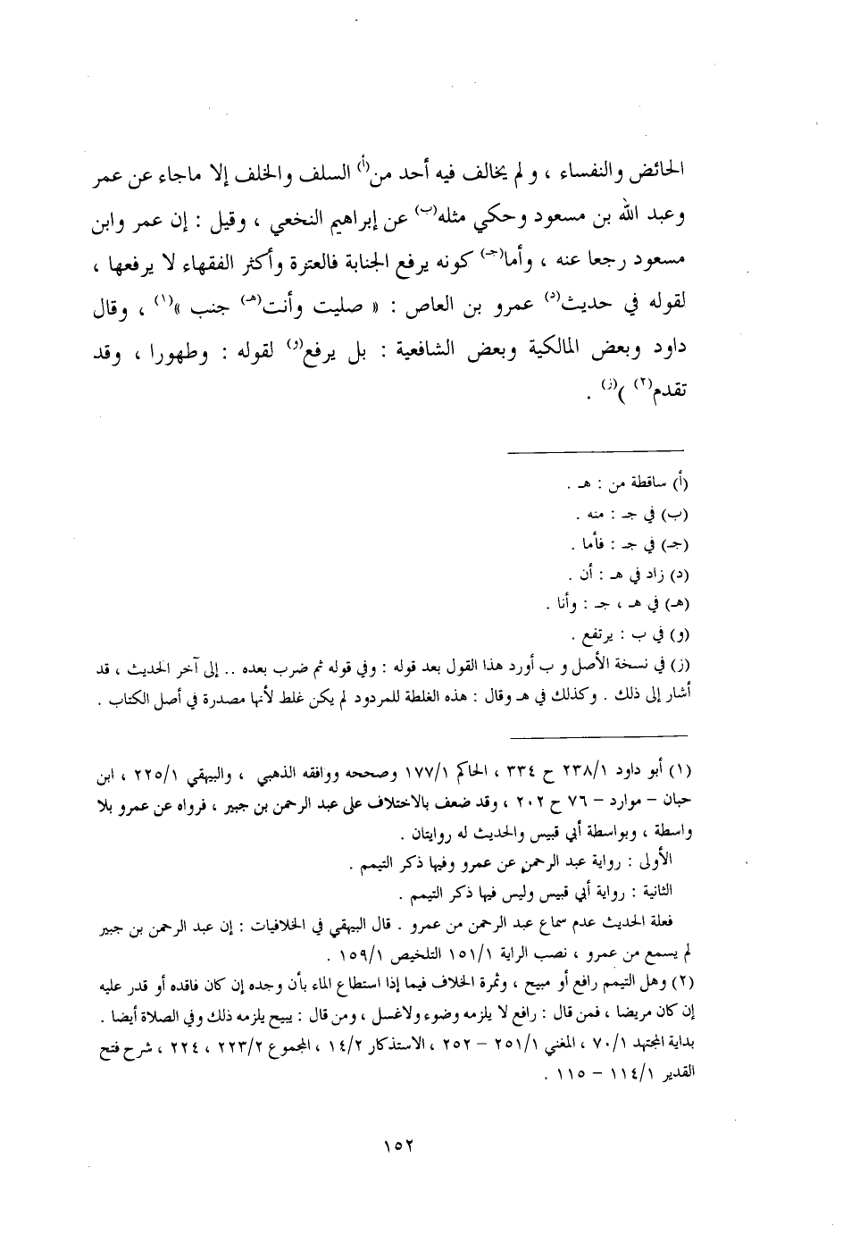 (¬1) أبو داود 1/ 238 ح 334، الحاكم 1/ 177 وصححه ووافقه الذهبي، والبيهقي 1/ 225، ابن حبان -موارد- 76 ح 202، وقد ضعف بالاختلاف على عبد الرحمن بن جبير، فرواه عن عمرو بلا واسطة، وبواسطة أبي قبيس والحديث له روايتان.