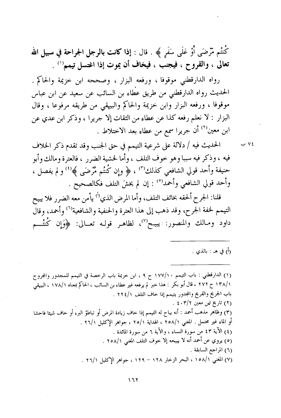 (¬7) المغني 1/ 158، البحر الزخار 128 - 129، جواهر الإكليل 1/ 26.