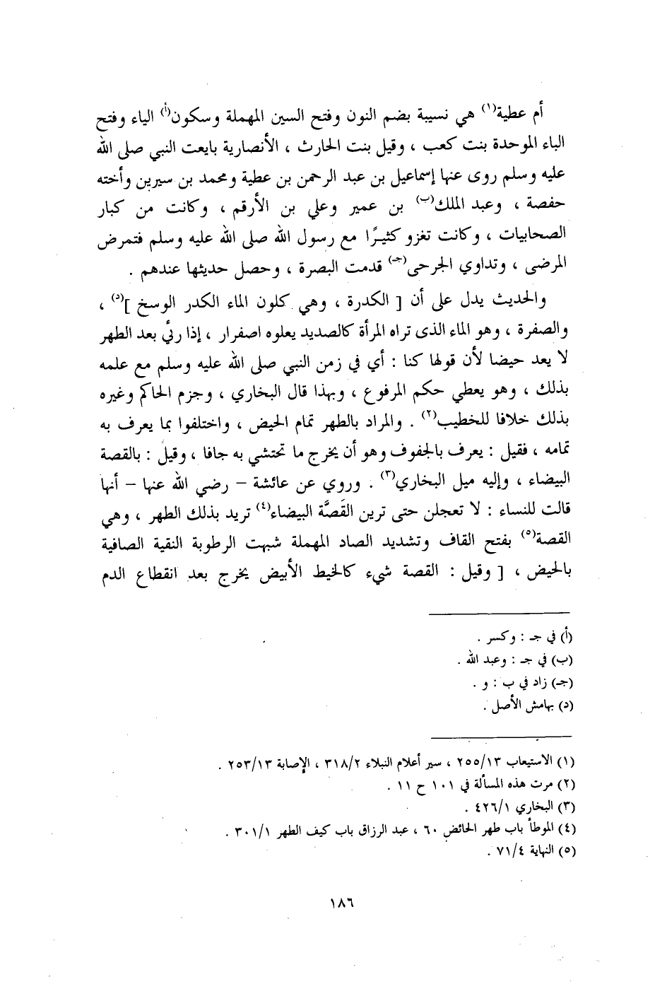(¬4) الموطأ باب طهر الحائض 60، عبد الرزاق باب كيف الطهر 1/ 301.