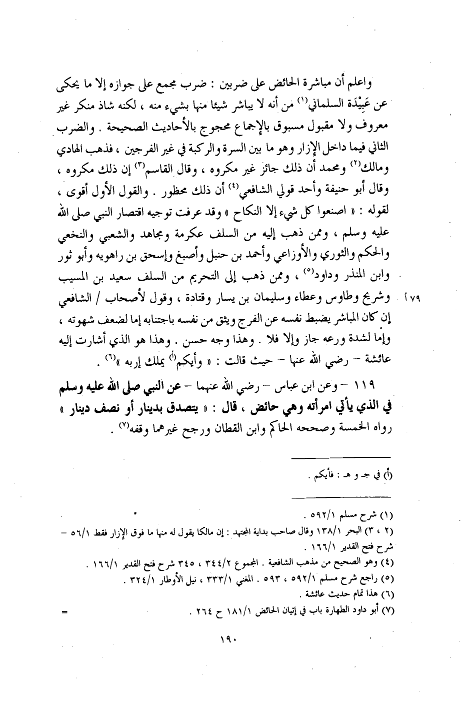 (¬7) أبو داود الطهارة باب في إتيان الحائض 1/ 181 ح 264. =