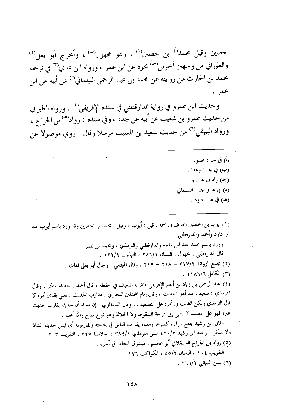 (¬4) عبد الرحمن بن زياد بن أنعم الإفريقي قاضيها ضعيف في حفظه، قال أحمد: حديثه منكر، وقال الترمذي: ضعيف عند أهل الحديث، وقال إمام المحدثين البخاري: مقارب الحديث. يعني يقوى أمره كما قال الترمذي ولكن الغالب في أمره على التضعيف، وقال السخاوي: إن معناه أن حديثه يقارب حديث غيره فهو على المعتمد لا ينتهي إلى درجة السقوط ولا الجلالة وهو نوع مدح والله أعلم.
