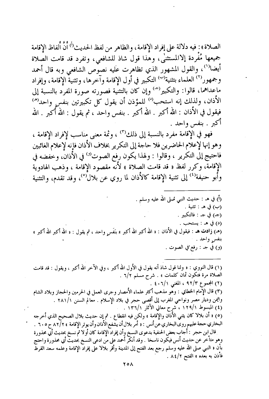 (¬1) قال النووي: "ولنا قول شاذ أنه يقول في الأول الله أكبر، وفي الآخر الله أكبر، ويقول: قد قامت الصلاة مرة فتكون ثمان كلمات". شرح مسلم 2/ 6.