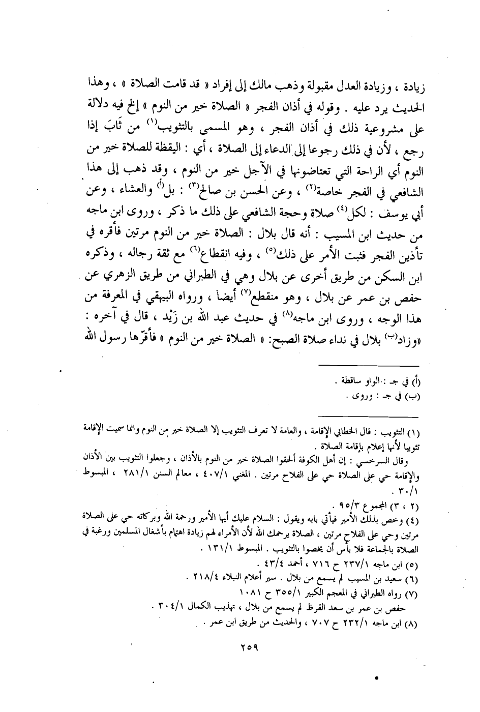 وقال السرخسي: إن أهل الكوفة ألحقوا الصلاة خير من النوم بالأذان، وجعلوا التثويب بين الأذان والإقامة حي على الصلاة حي على الفلاح مرتين. المغني 1/ 407، معالم السنن 1/ 281، المبسوط 1/ 30.
