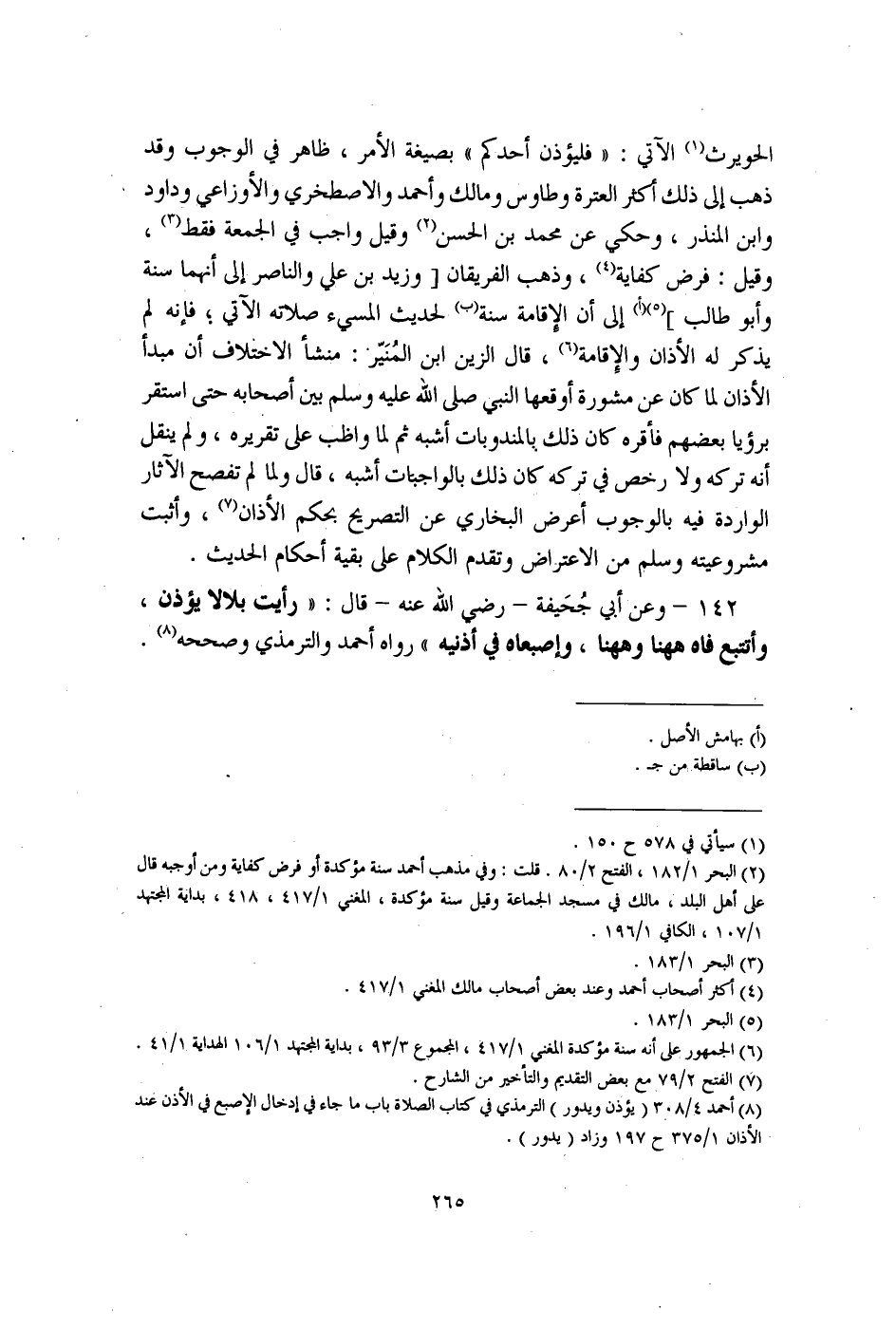 (¬6) الجمهور على أنه سنة مؤكدة المغني 1/ 417، المجموع 3/ 93، بداية المجهد 1/ 106 الهداية 1/ 41.