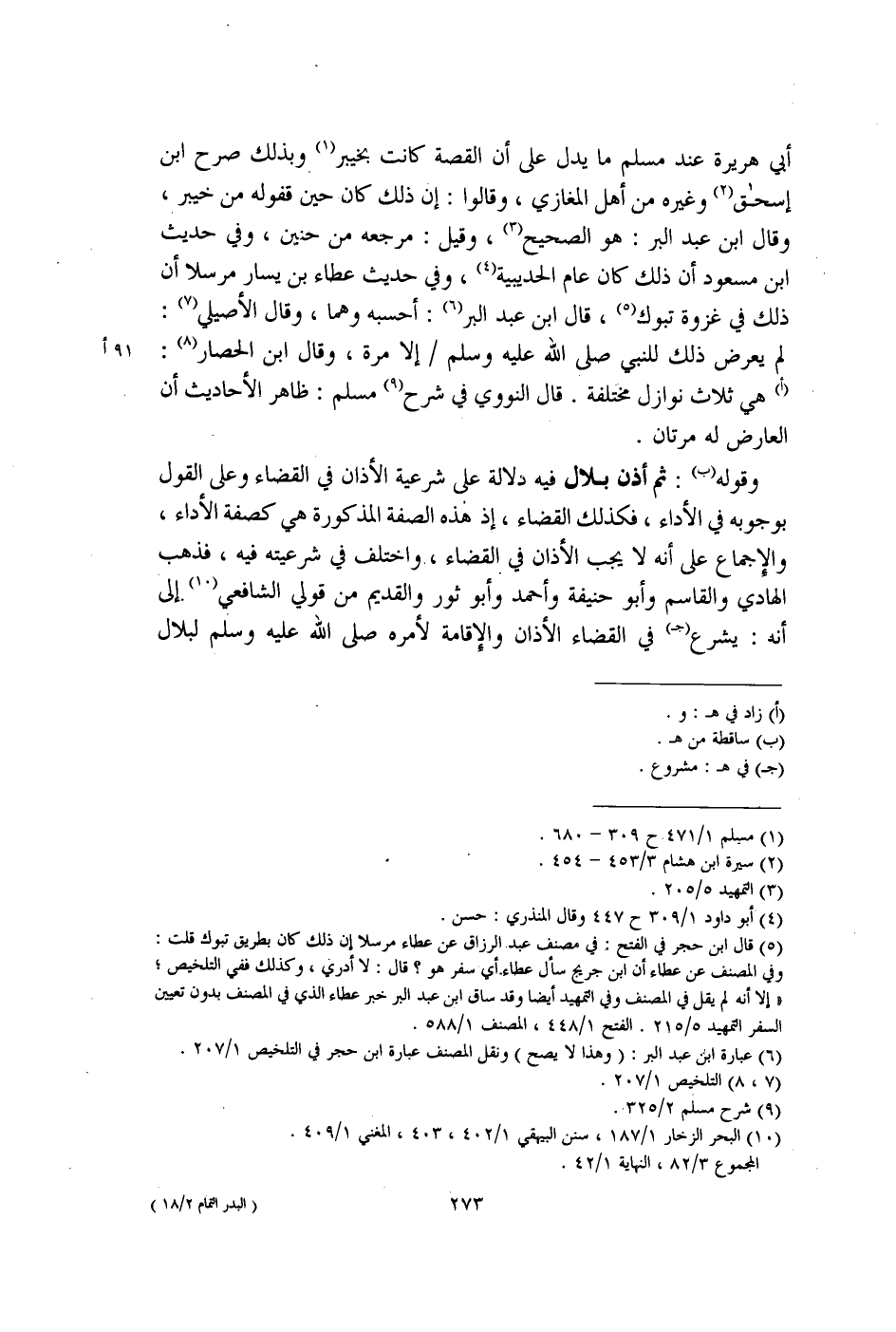 (¬10) البحر الزخار 1/ 187، سنن البيهقي 1/ 402، 403، المغني 1/ 409.