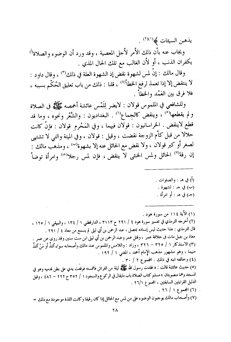 (¬3) الاستذكار 1/ 325 - 326، وزاد: واللامس والملموس عند مالك وأصحابه سواء التذَّ أو مَنْ التذَّ منهما، وهو مشهور مذهب الإمام أحمد، المغني 1/ 192.