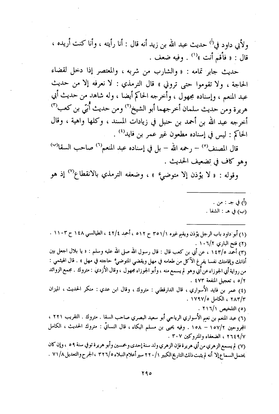 (¬6) عبد المنعم بن نعيم الأسواري الرياحي أبو سعيد البصري صاحب السقا. متروك. التقريب 221، المجروحين 2/ 157 - 158. وفيه يحيى بن مسلم البكاء، قال النسائي: متروك الحديث، الكامل 7/ 2649، الضعفاء والمتروكين 307.
