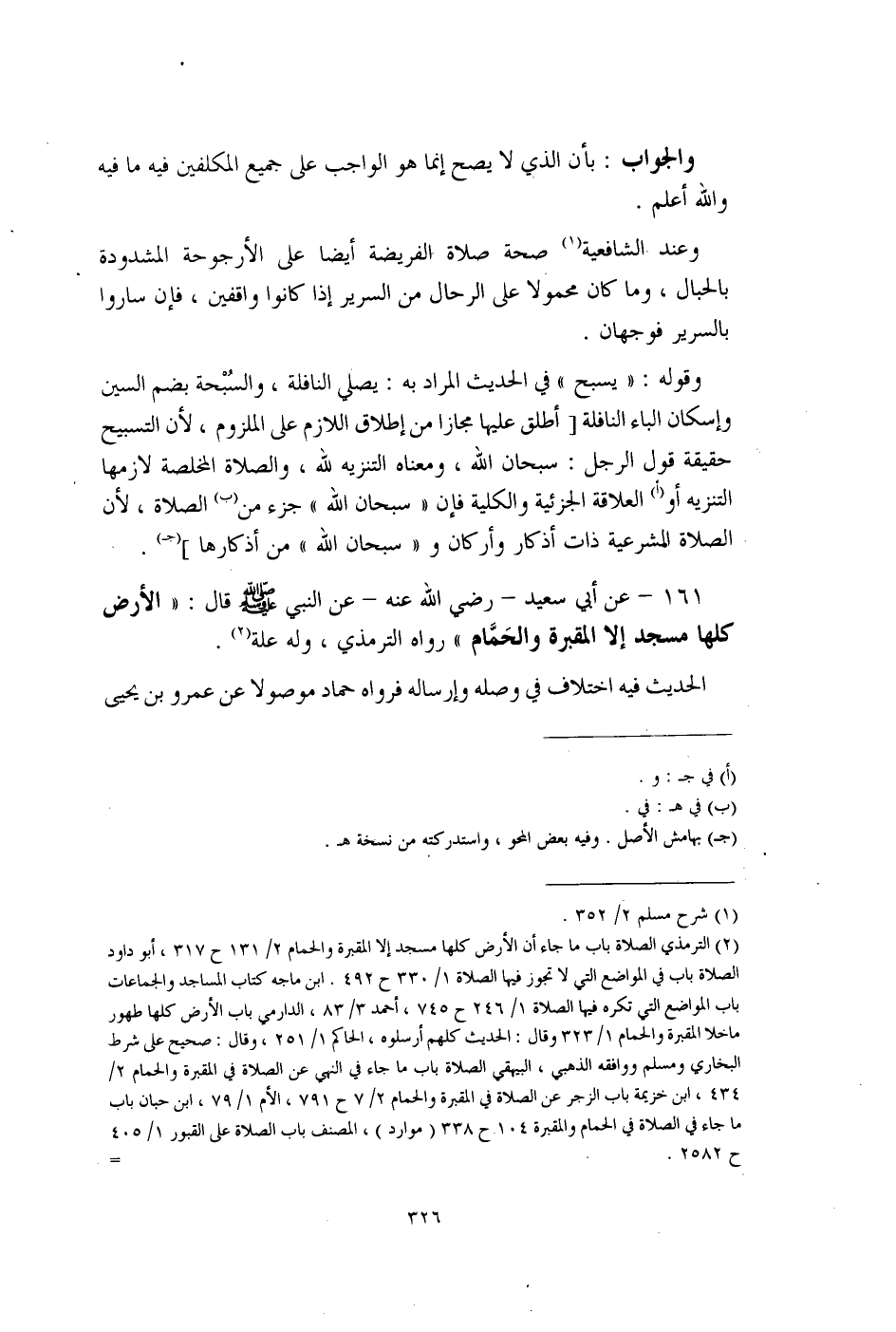 (¬2) الترمذي الصلاة باب ما جاء أن الأرض كلها مسجد إلا المقبرة والحمام 2/ 131 ح 317، أبو داود الصلاة باب في المواضع التي لا تجوز فيها الصلاة 1/ 330 ح 492. ابن ماجه كتاب المساجد والجماعات باب المواضع التي تكره فيها الصلاة 1/ 246 ح 745، أحمد 3/ 83، الدارمي باب الأرض كلها طهور ما خلا المقبرة والحمام 1/ 323 وقال: الحديث كلهم أرسلوه، الحاكم 1/ 251، وقال: صحيح على شرط البخاري ومسلم ووافقه الذهبي، البيهقي الصلاة باب ما جاء في النهي عن الصلاة في المقبرة والحمام 2/ 434, ابن خزيمة باب الزجر عن الصلاة في المقبرة والحمام 2/ 7 ح 791، الأم 1/ 79، ابن حبان باب ما جاء في الصلاة في الحمام والمقبرة 104 ح 338 (موارد)، المصنف باب الصلاة على القبور 1/ 405 ح 2582.=