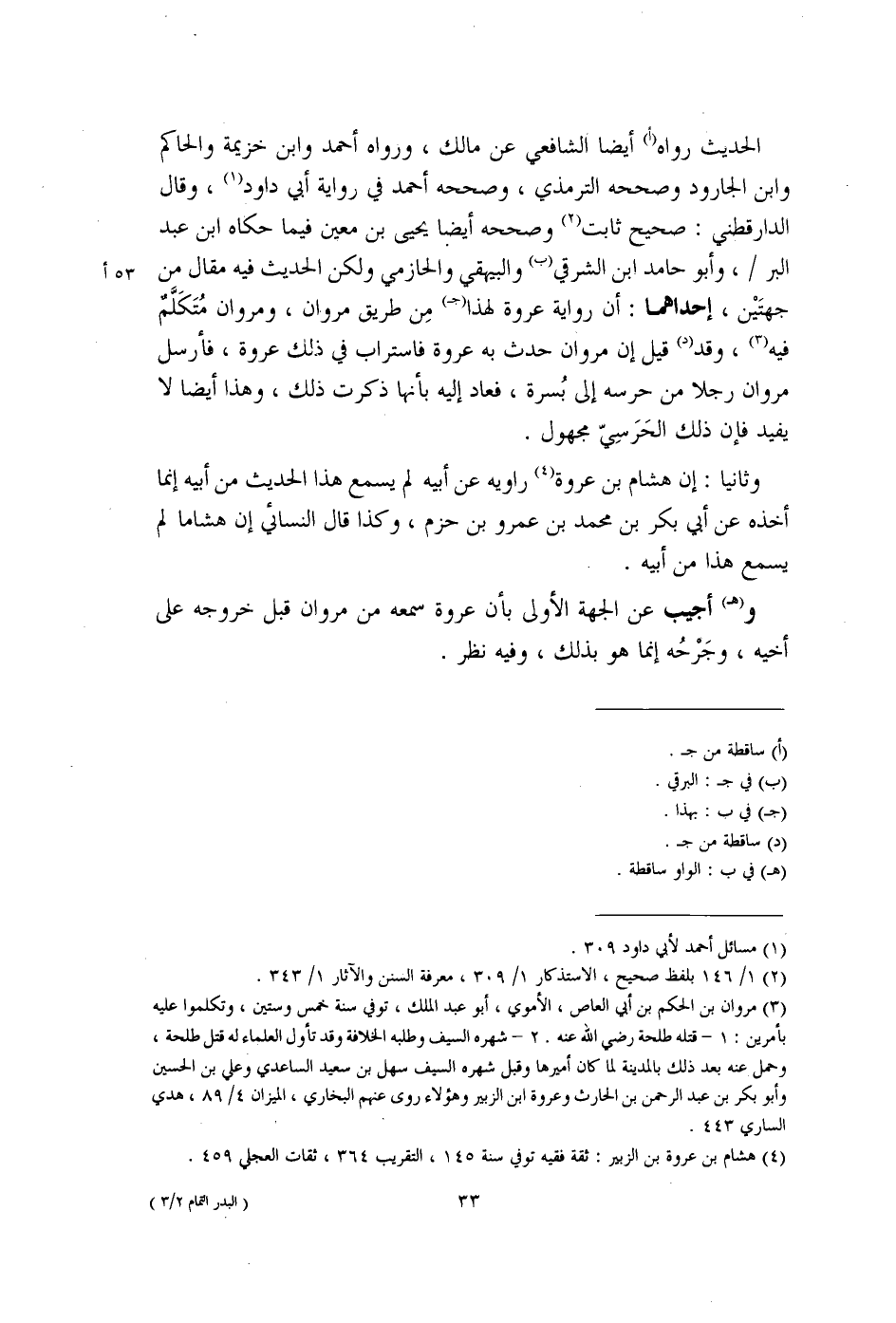 (¬4) هشام بن عروة بن الزبير: ثقة فقيه توفي سنة 145، التقريب 364، ثقات العجلي 459.