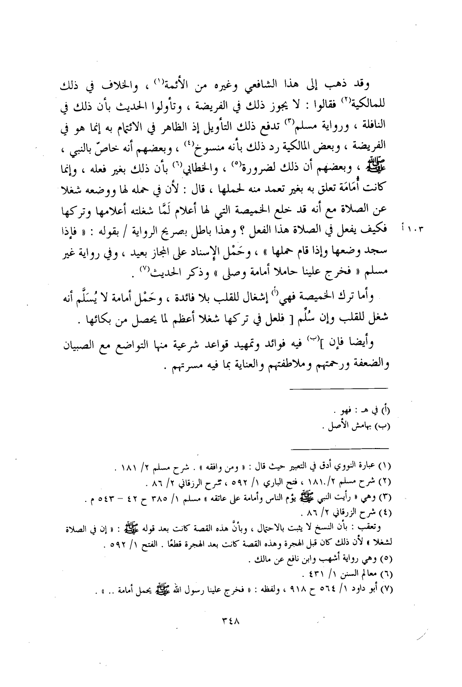(¬7) أبو داود 1/ 564 ح 918، ولفظه: "فخرج علينا رسول الله - صلى الله عليه وسلم - يحمل أمامة .. ".