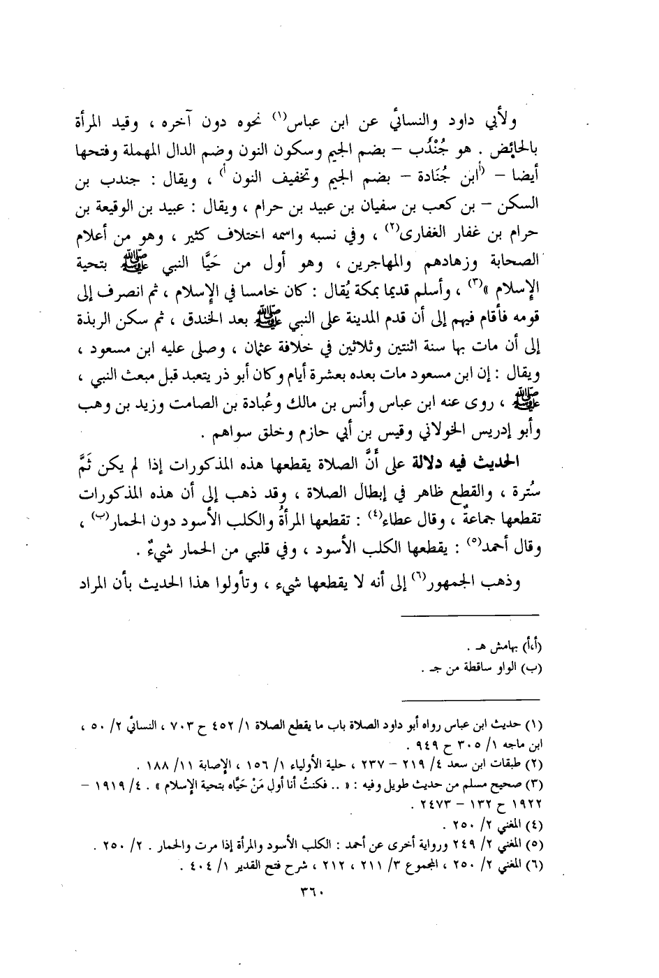 (¬1) حديث ابن عباس رواه أبو داود الصلاة باب ما يقطع الصلاة 1/ 452 ح 703، النسائي 2/ 50، ابن ماجه 1/ 305 ح 949.