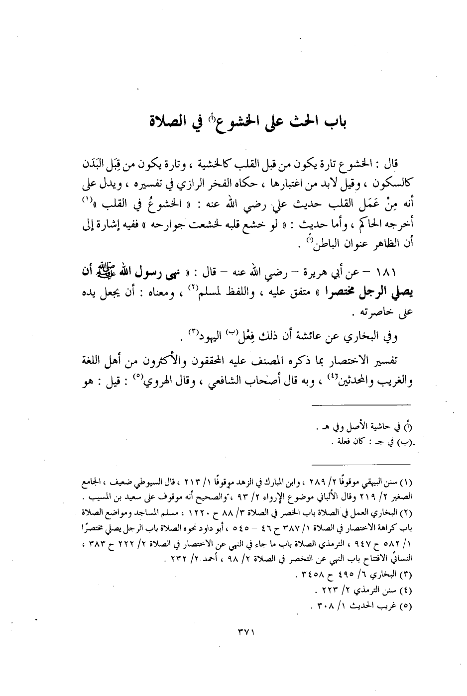 باب الحث على الخشوع (أ) في الصلاة
