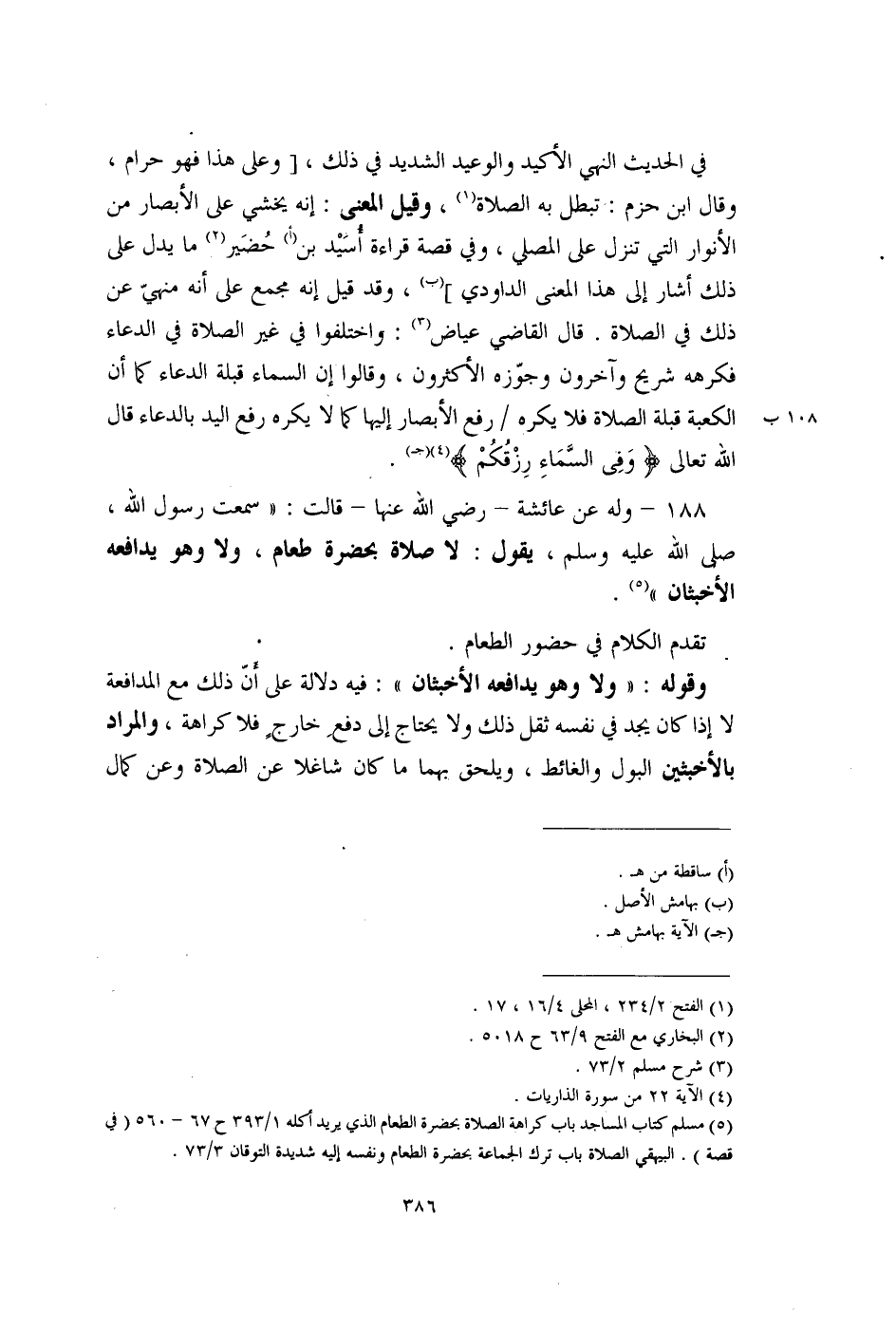 (¬5) مسلم كتاب المساجد باب كراهة الصلاة بحضرة الطعام الذي يريد أكله 1/ 393 ح 67 - 560 (في قصة). البيهقي الصلاة باب ترك الجماعة بحضرة الطحاكم ونفسه إليه شديدة التوقان 3/ 73.
