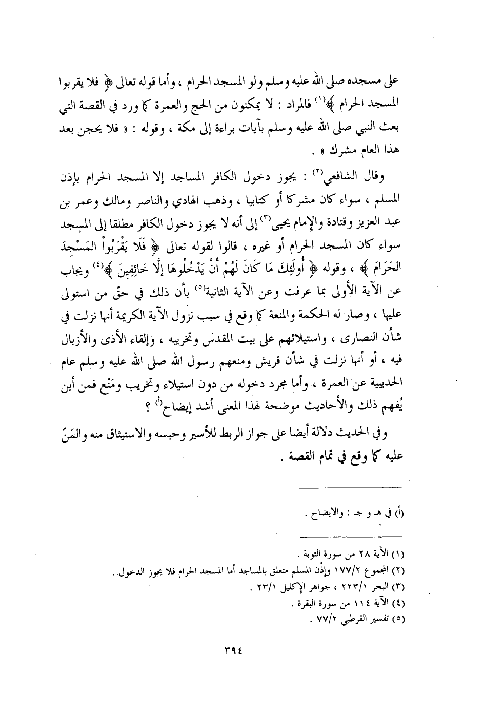 (¬2) المجموع 2/ 177 وإذن المسلم متعلق بالمساجد أما المسجد الحرام فلا يجوز الدخول.