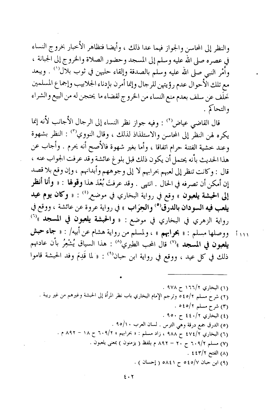 (¬2) شرح مسلم 2/ 345 وترجم الإمام البخاري باب نظر المرأة إلى الحبشة وغيرهم من غير ريبة.
