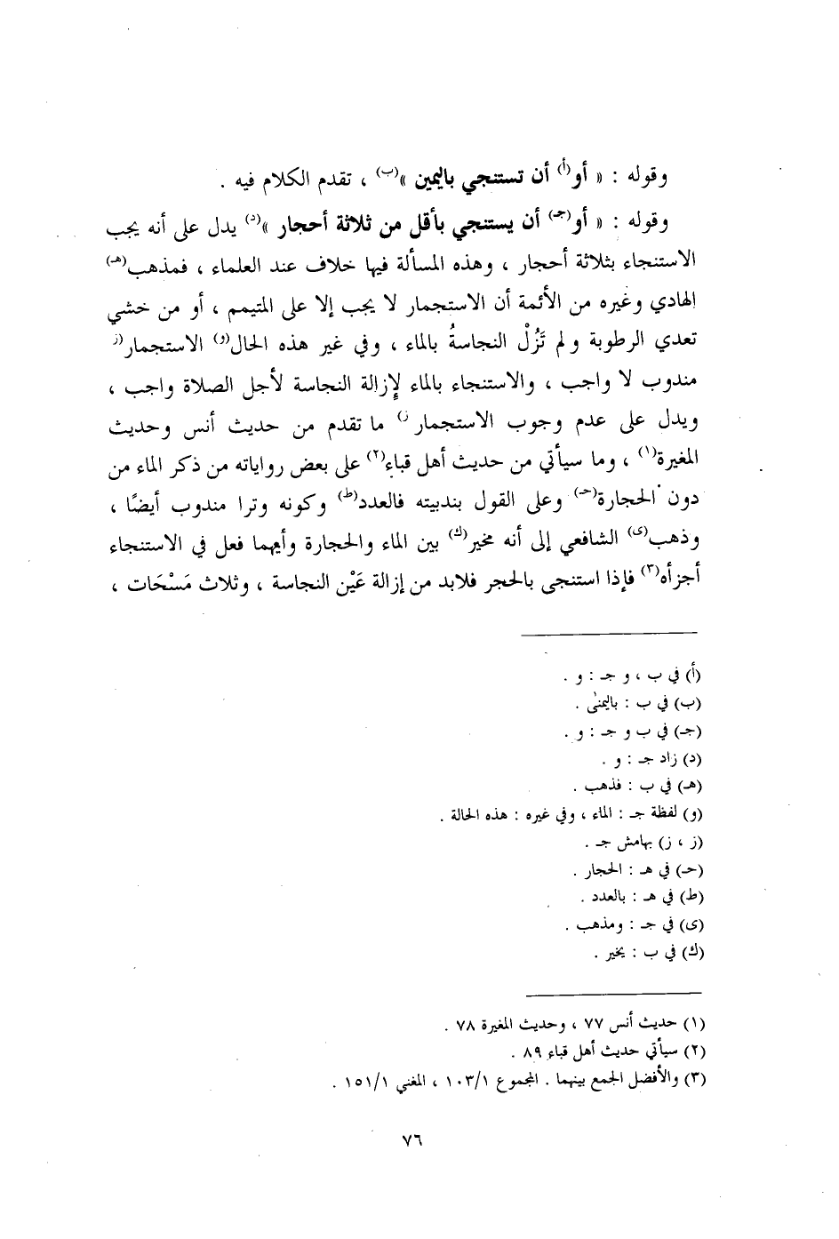 وقوله: "أو (أ) أن تستنجي باليمين" (ب)، تقدم الكلام فيه.