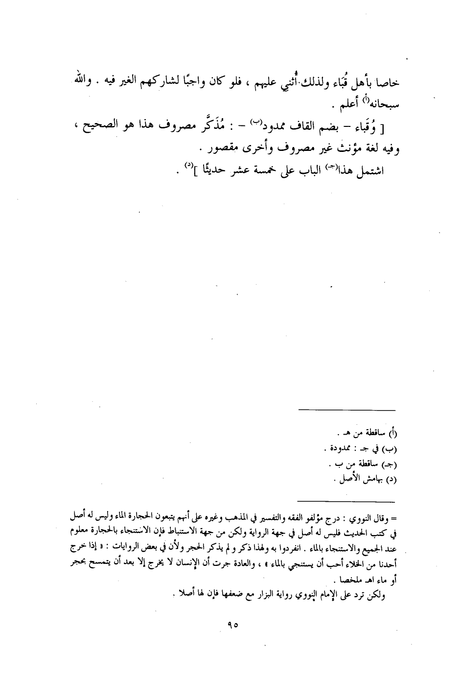 خاصا بأهل قُبَاء ولذلك. أُثنِي عليهم، فلو كان واجبًا لشاركهم الغير فيه. والله سبحانه (أ) أعلم.