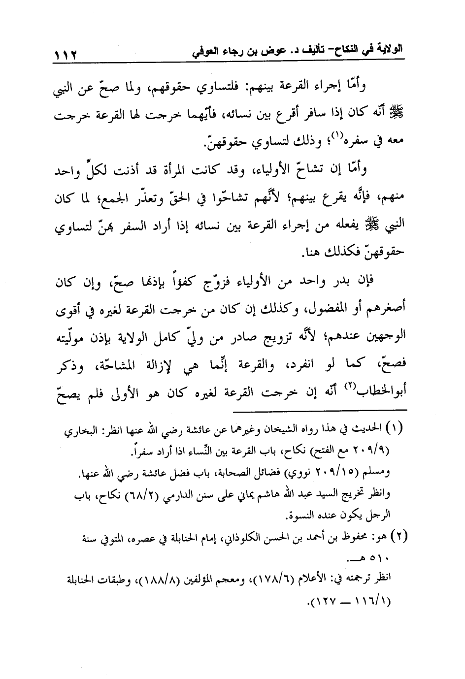 1 الحديث في هذا رواه الشيخان وغيرهما عن عائشة رضي الله عنها انظر: البخاري (9/209 مع الفتح) نكاح، باب القرعة بين النِّساء اذا أراد سفراً.