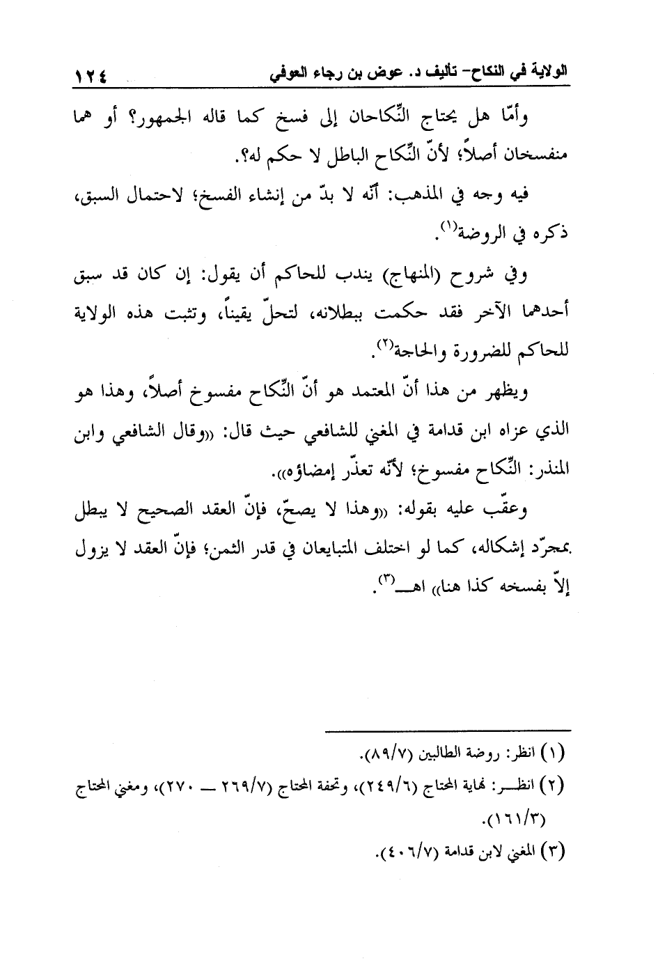 ويظهر من هذا أنّ المعتمد هو أنّ النِّكاح مفسوخ أصلاً، وهذا هو الذي عزاه ابن قدامة في المغني للشافعي حيث قال: "وقال الشافعي وابن المنذر: النِّكاح مفسوخ؛ لأنّه تعذّر إمضاؤه".