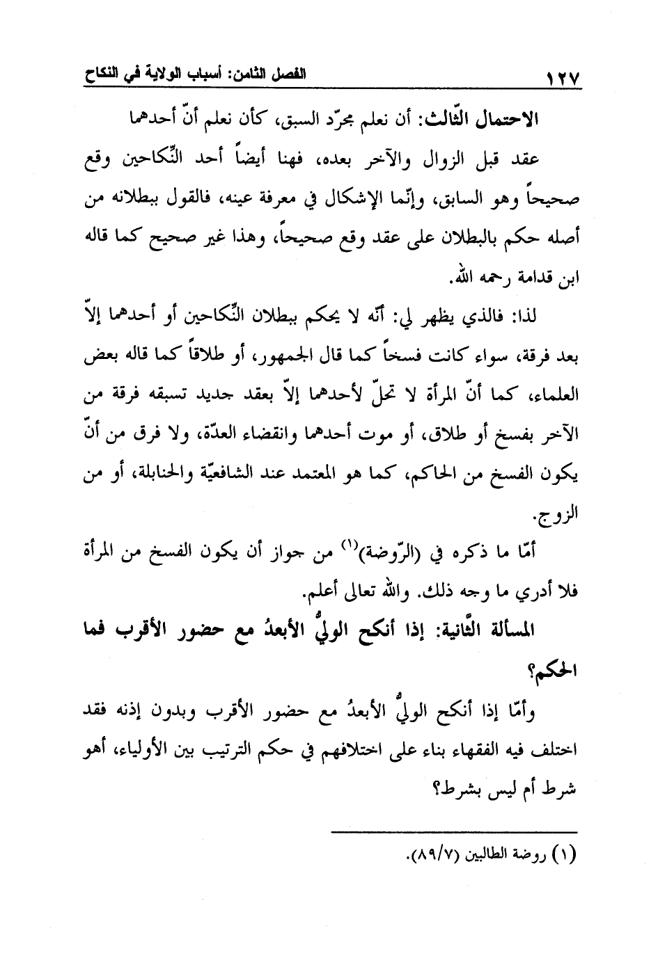 المسألة الثَّّانية: إذا أنكح الوليُّ الأبعدُ مع حضور الأقرب فما الحكم؟