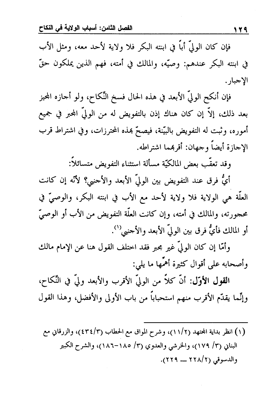1 انظر بداية المجتهد (2/11) ، وشرح المواق مع الحطاب (3/434) ، والزرقاني مع البناني (3/ 179) ، والخرشي والعدوي (3/ 185-186) ، والشرح الكبير والدسوقي (2/228 ـ 229) .