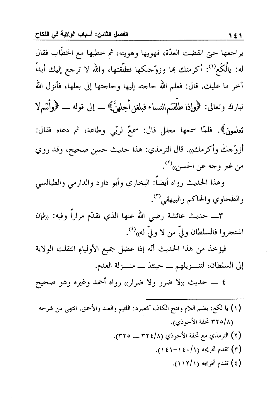 3 حديث عائشة رضي الله عنها الذي تقدّم مراراً وفيه: "فإن اشتجروا فالسلطان وليّ من لا وليّ له"4.
