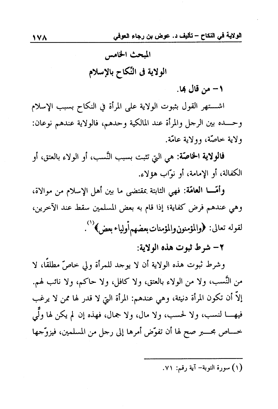 المبحث الخامس: الولاية فى النِّكاح بالإسلام