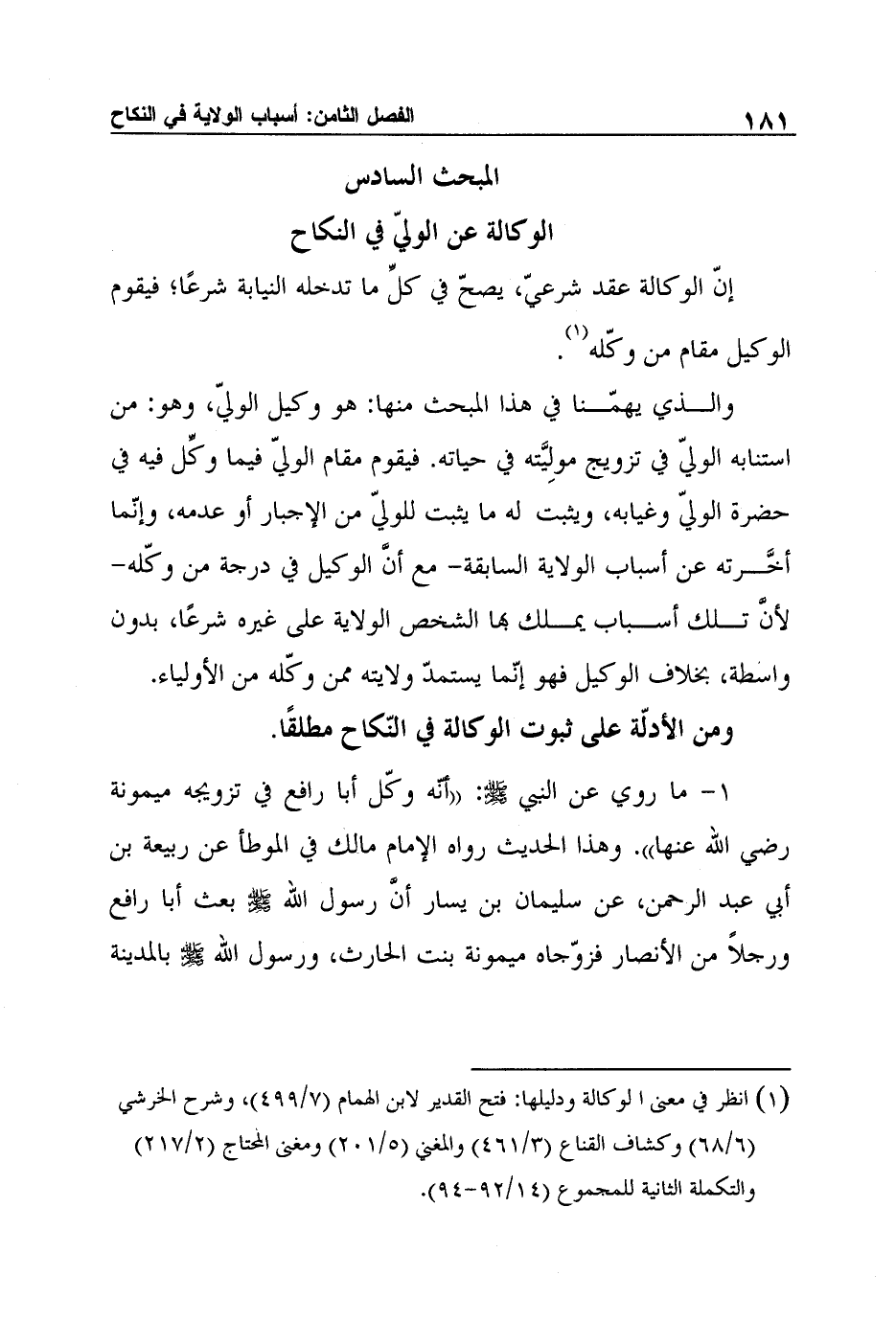 المبحث السادس: الوكالة عن الوليّ في النكاح