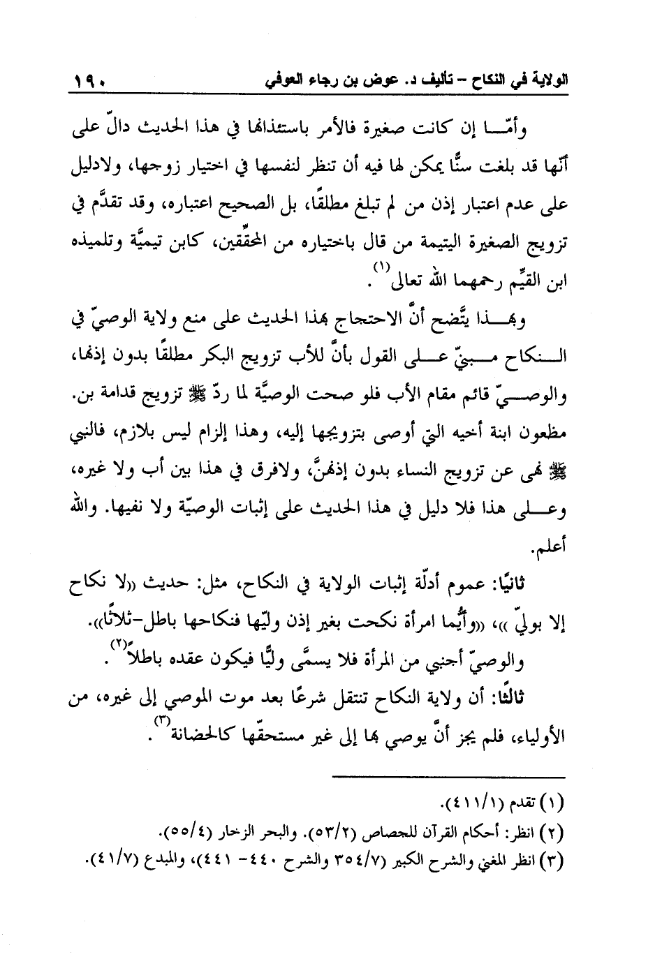 ثانيًا: عموم أدلّة إثبات الولاية في النكاح، مثل: حديث "لا نكاح إلا بوليّ "، "وأيُّما امرأة نكحت بغير إذن وليّها فنكاحها باطل-ثلاثًا".