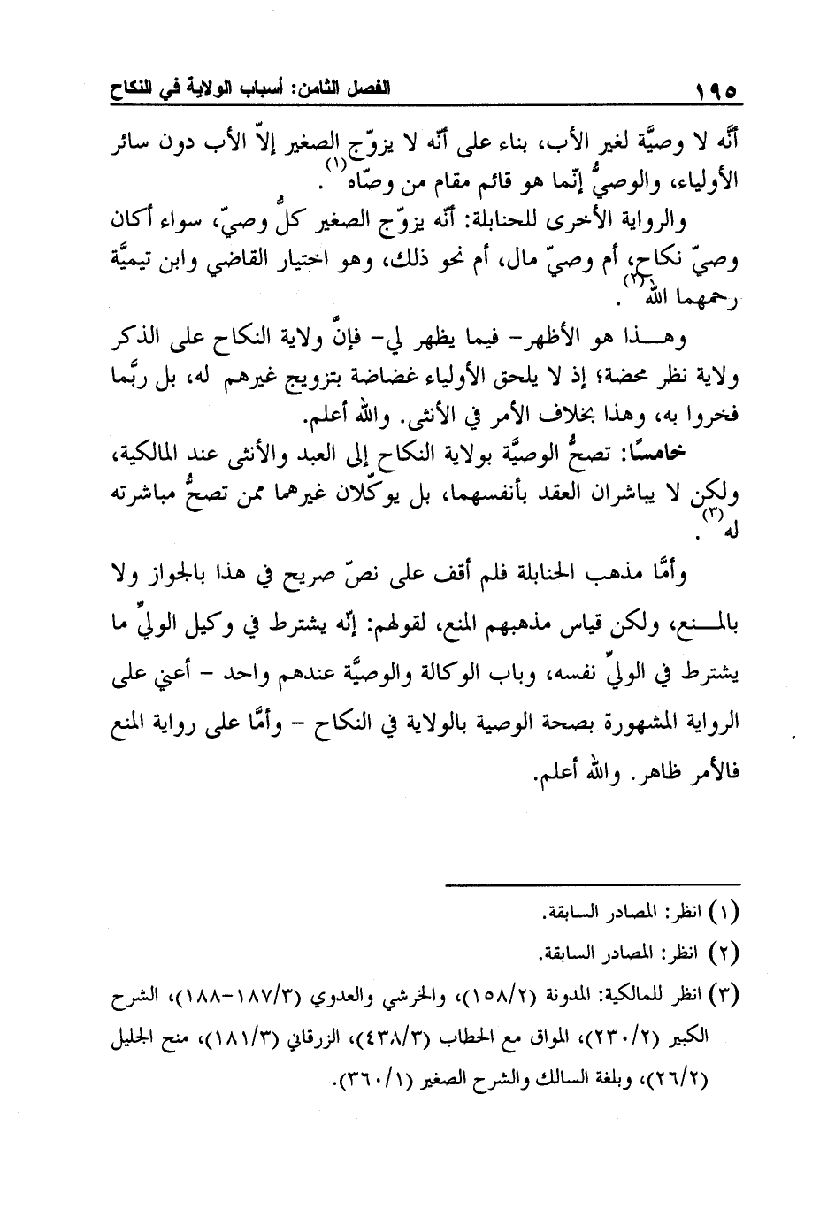 خامسًا: تصحُّ الوصيَّة بولاية النكاح إلى العبد والأنثى عند المالكية، ولكن لا يباشران العقد بأنفسهما، بل يوكّلان غيرهما ممن تصحُّ مباشرته له 3.